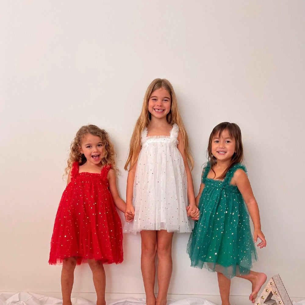 Luxe Ballerina Christmas Sparkle Tulle Tutu Leotard - Red