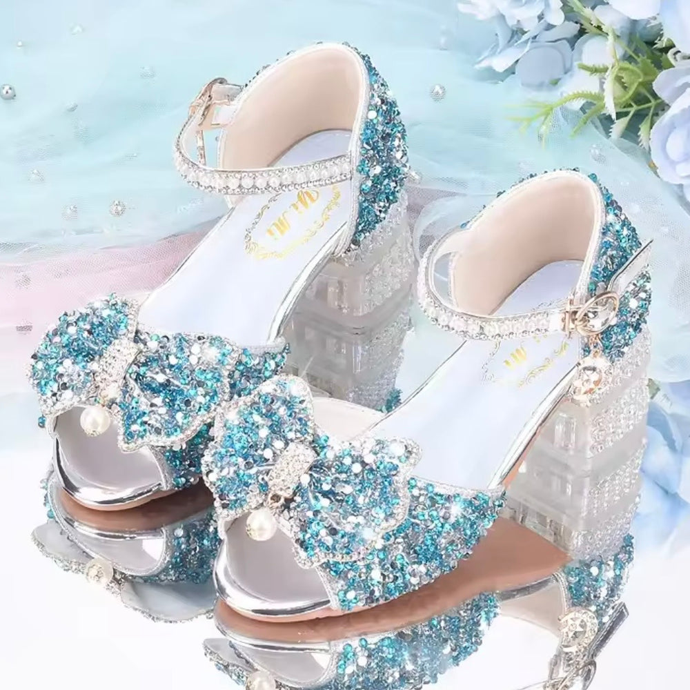 Blue Little Girls High Heel Princess Birthday Girl Shoes