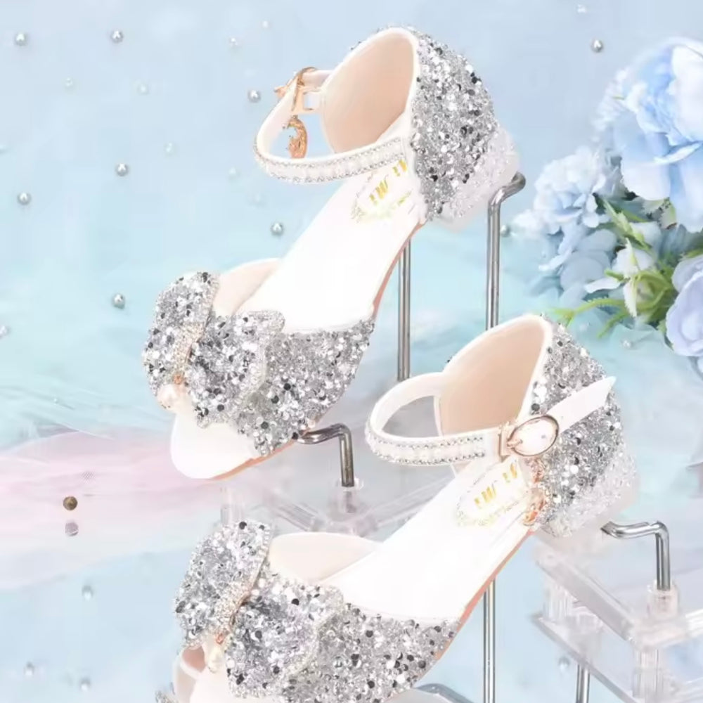 Silver Little Girls High Heel Princess Birthday Girl Shoes
