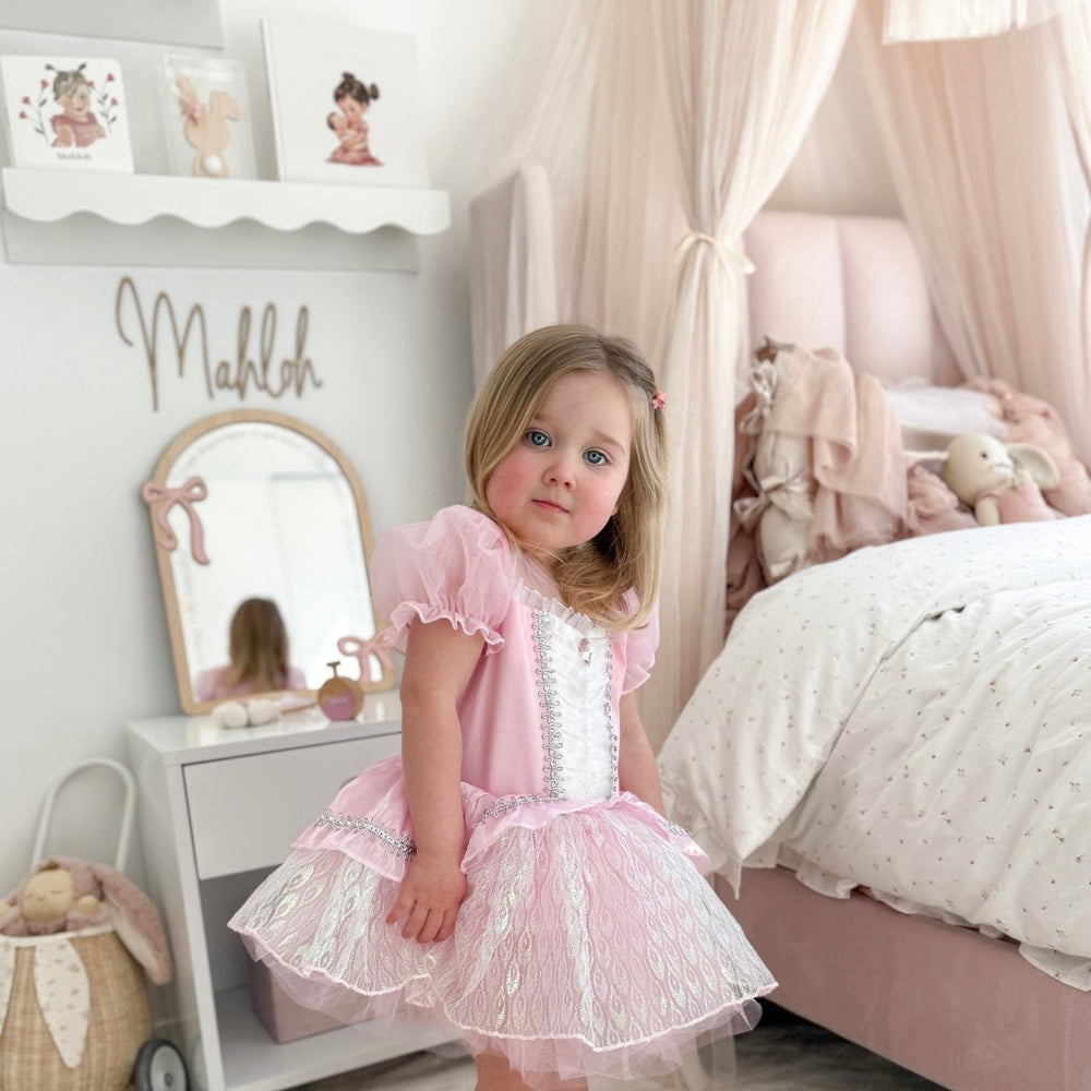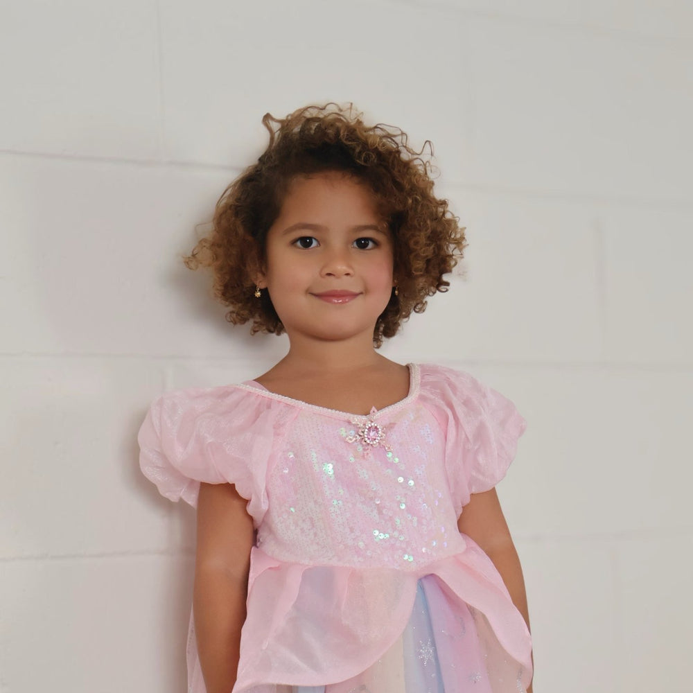 Kids little girls Aurora Tulle Fairy Birthday Dress - Pink Rainbow