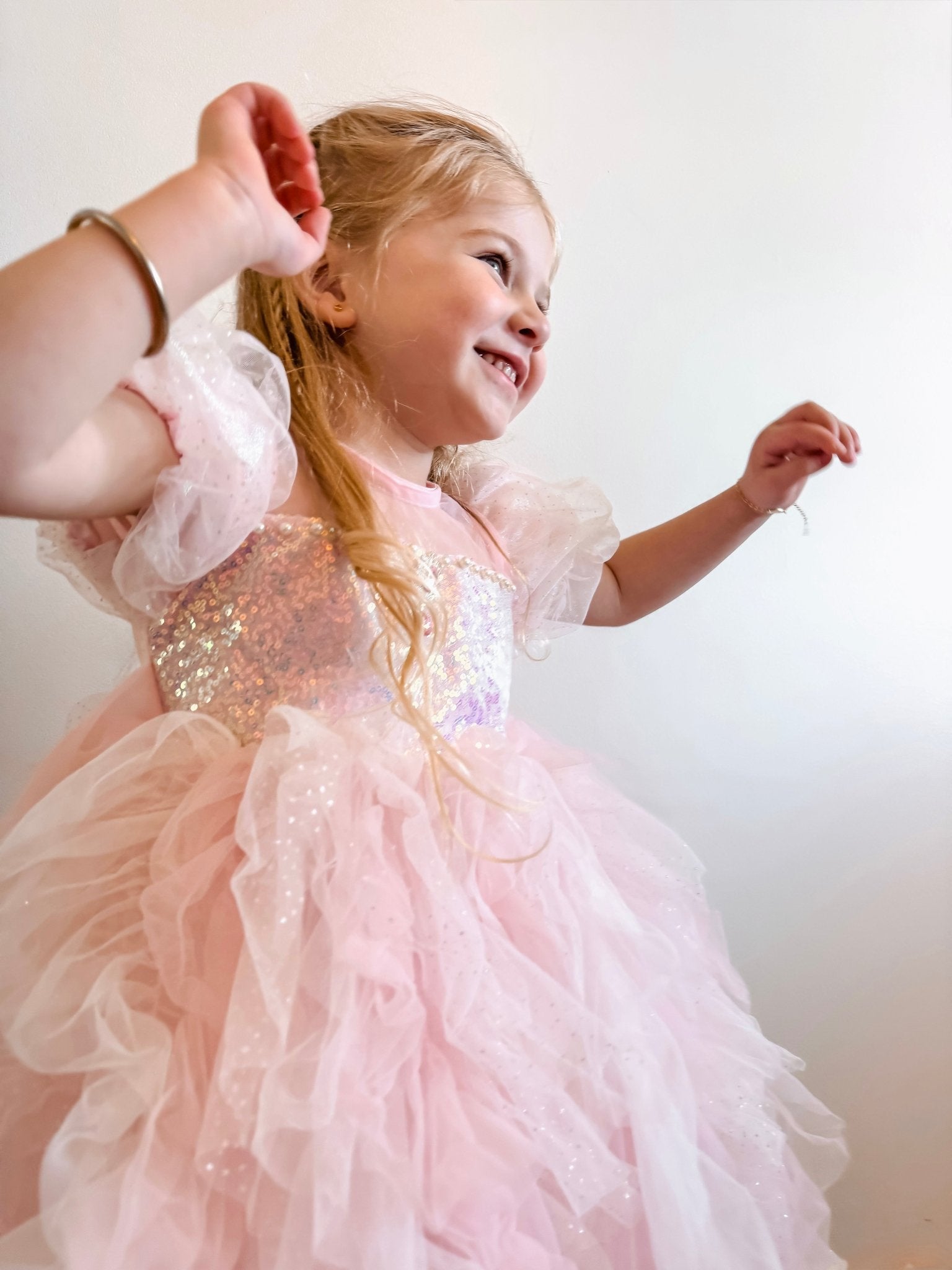 👑 Shimmering sequin bodice for that magical sparkle.