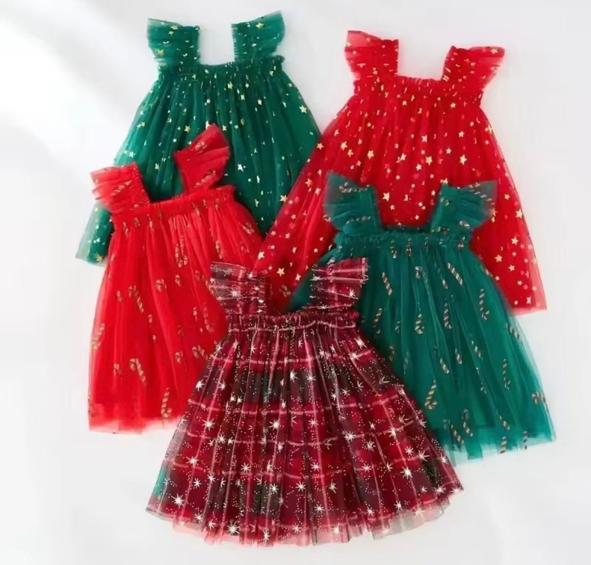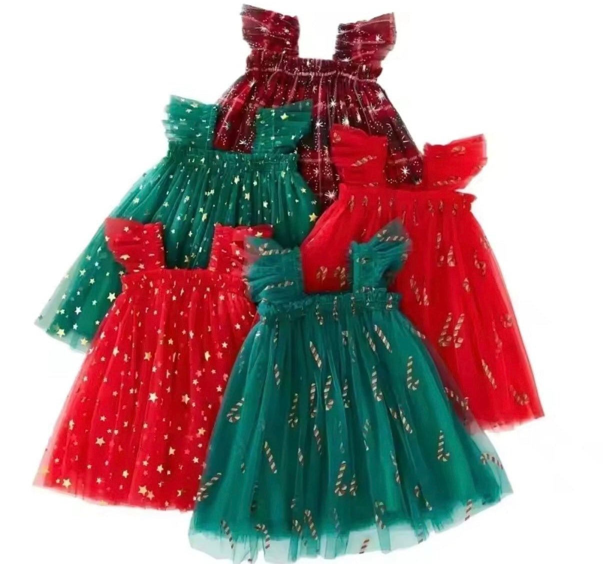 Enchanting Christmas Star Tulle Party Dress – Available in Green or Red ✨🎄