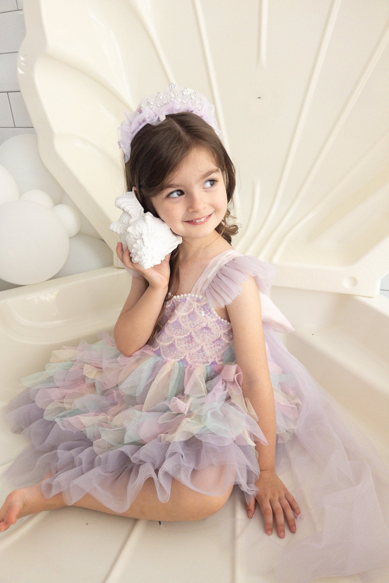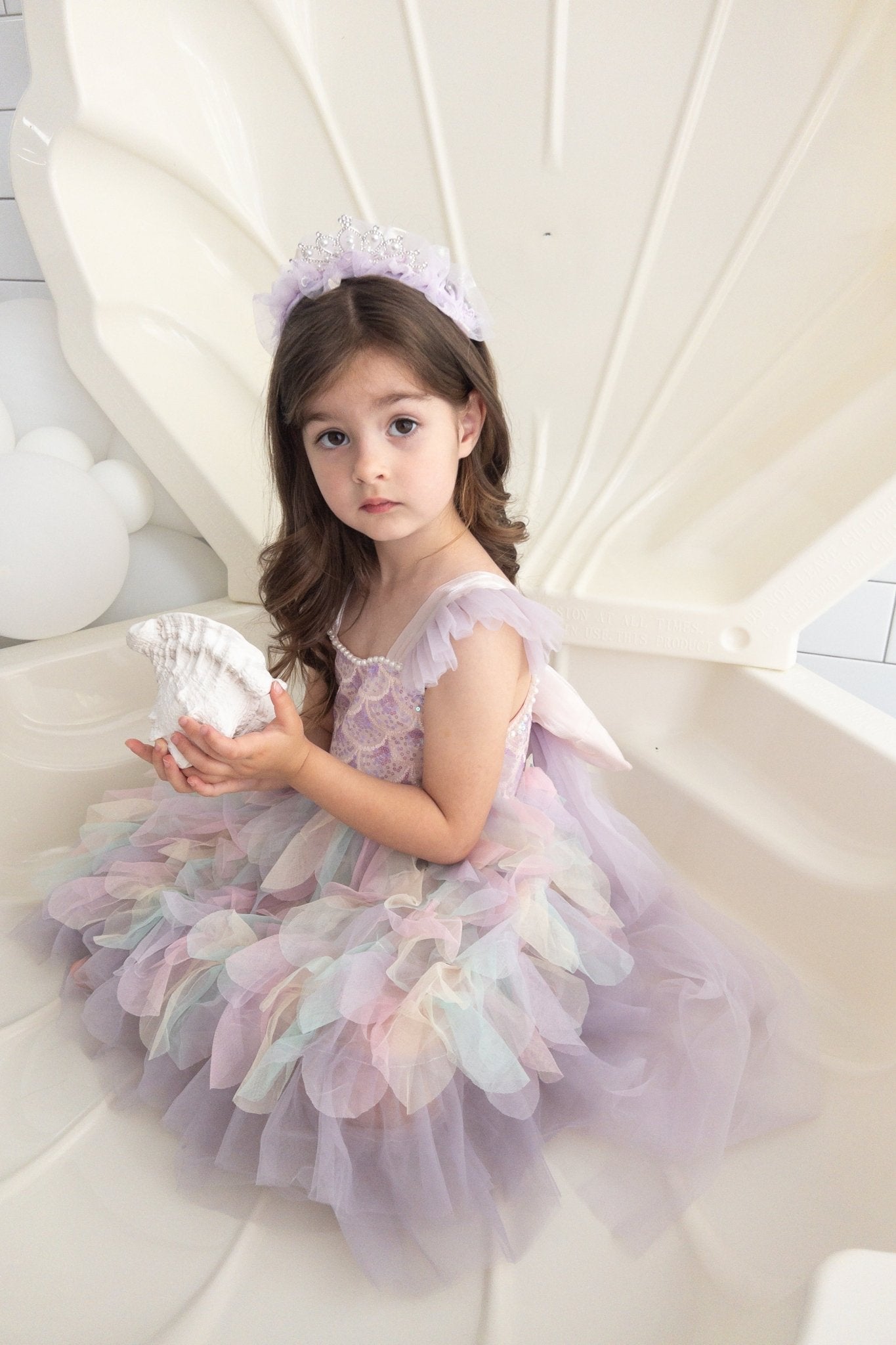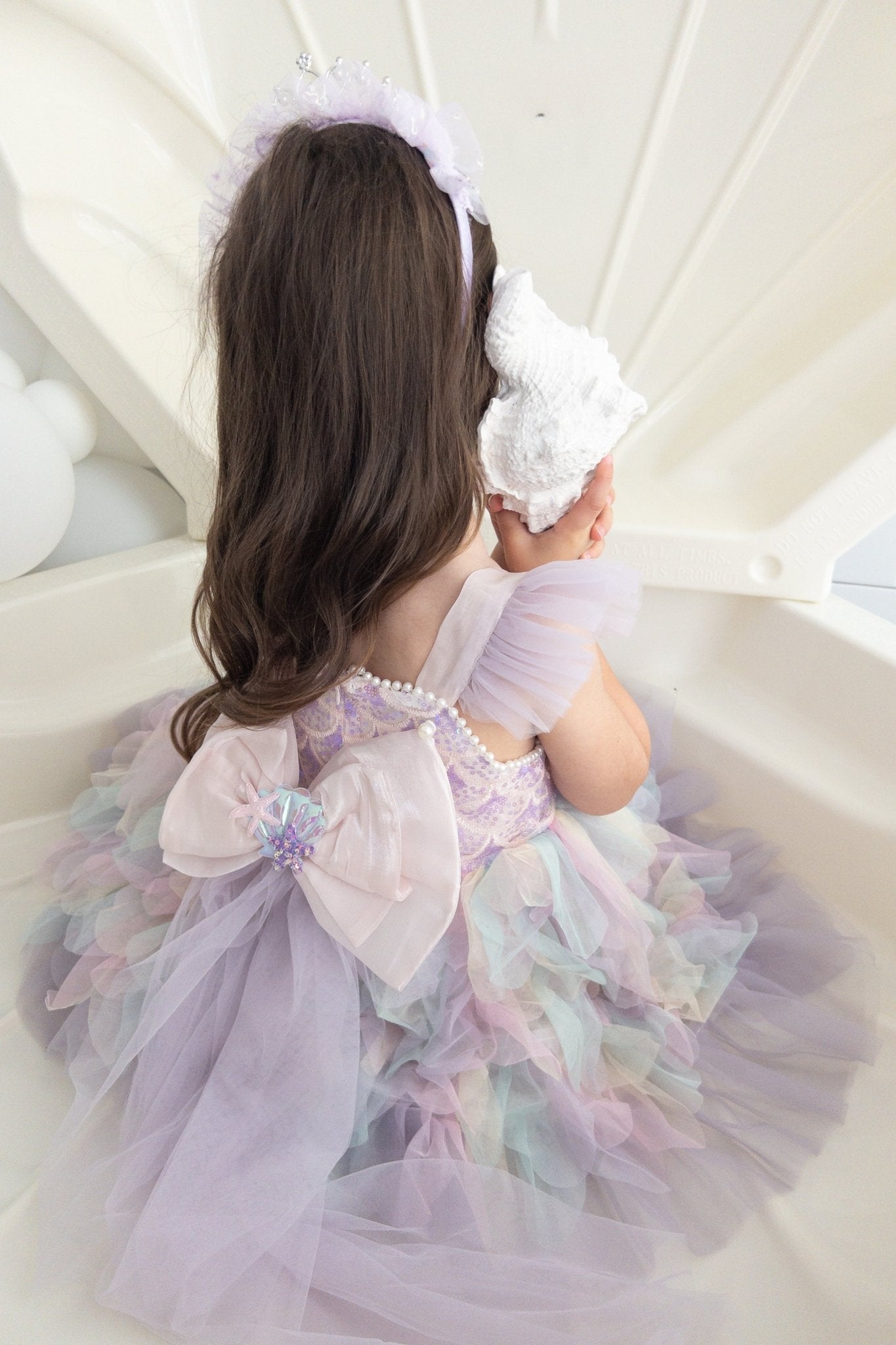Make a splash! Our Mermaid Rainbow Bow Luxe Princess Dress shimmers with pastel magic—perfect for birthdays, photoshoots and every “under-the-sea” adventure.