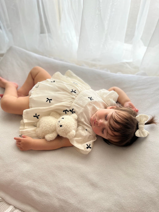 Baby Girls French Luxe Bow Puff Frill Romper - Black/Ivory