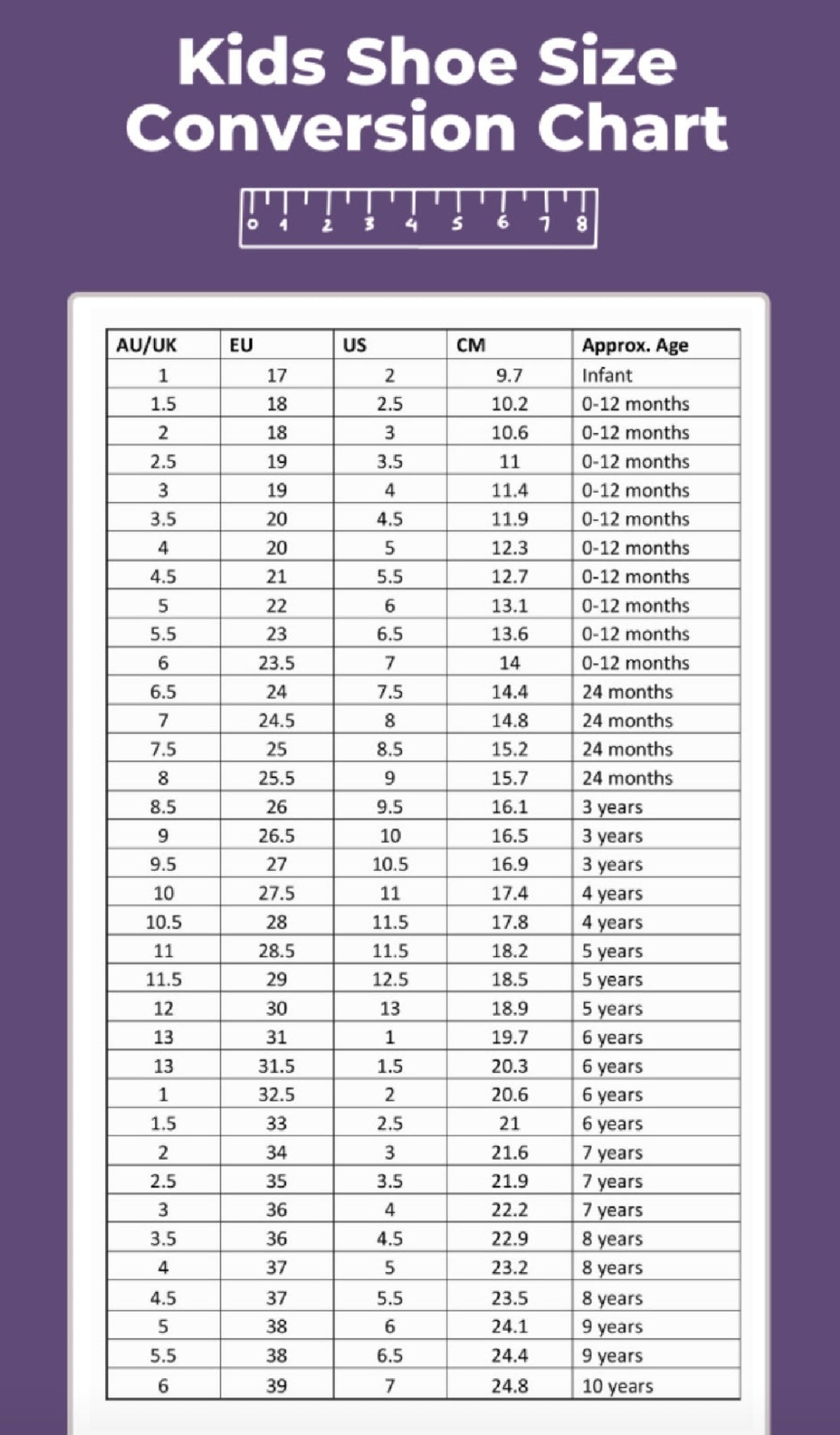we suggest measuring your little girls foot to get the correct shoe sizes always best to go 1-2cm to get more wear out of them.