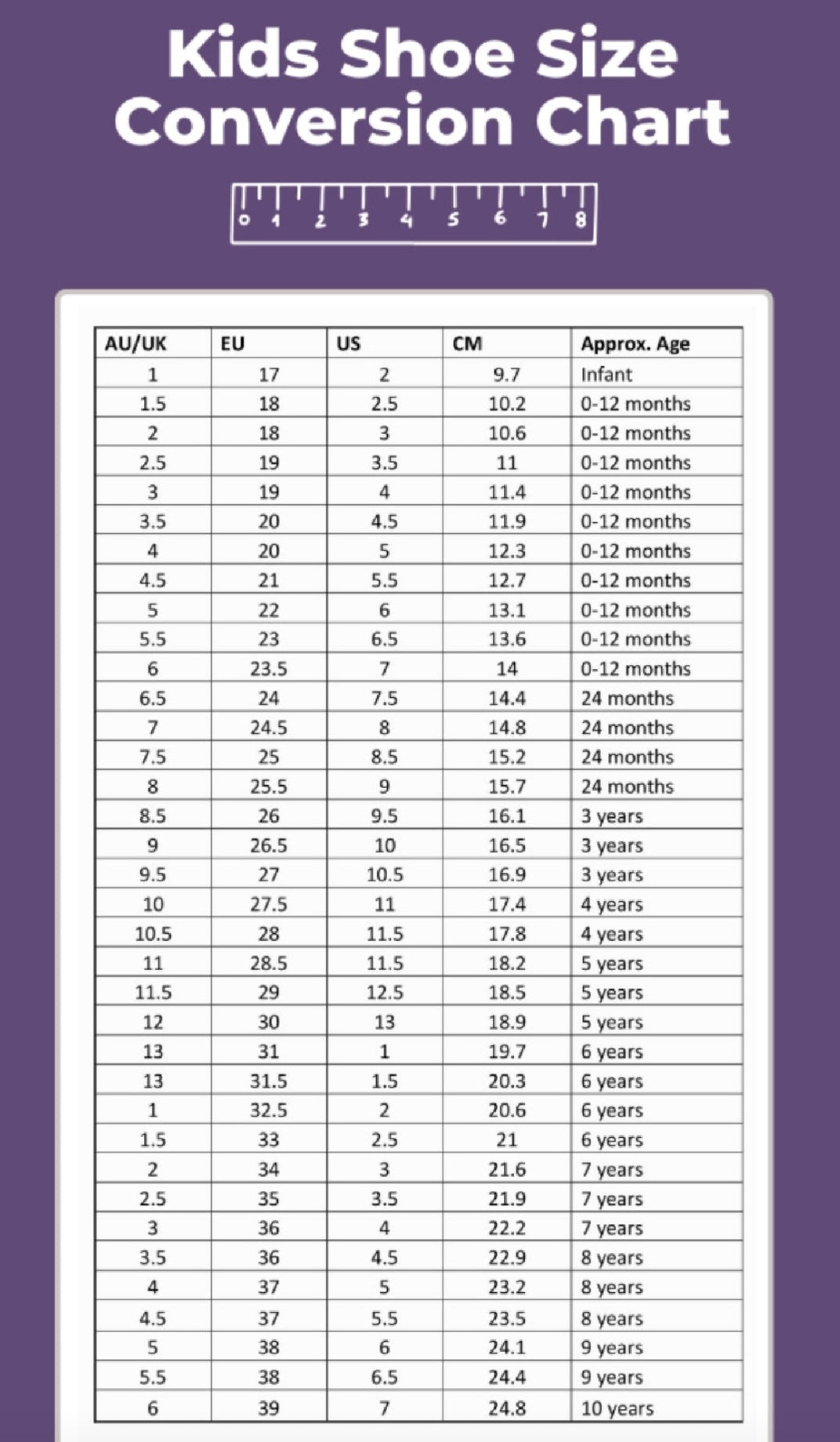 we suggest measuring your little girls foot to get the correct shoe sizes always best to go 1-2cm to get more wear out of them as we dont do exchange on shoes so please choose correct size.
