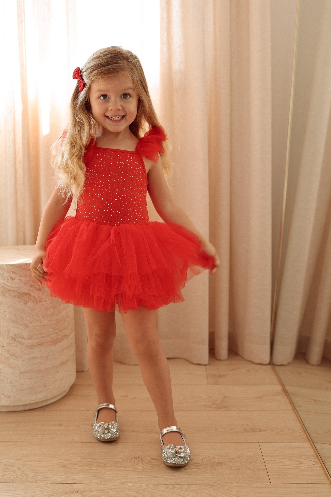 Luxe Ballerina Christmas Sparkle Tulle Tutu Leotard - Red - Fox Baby & Co