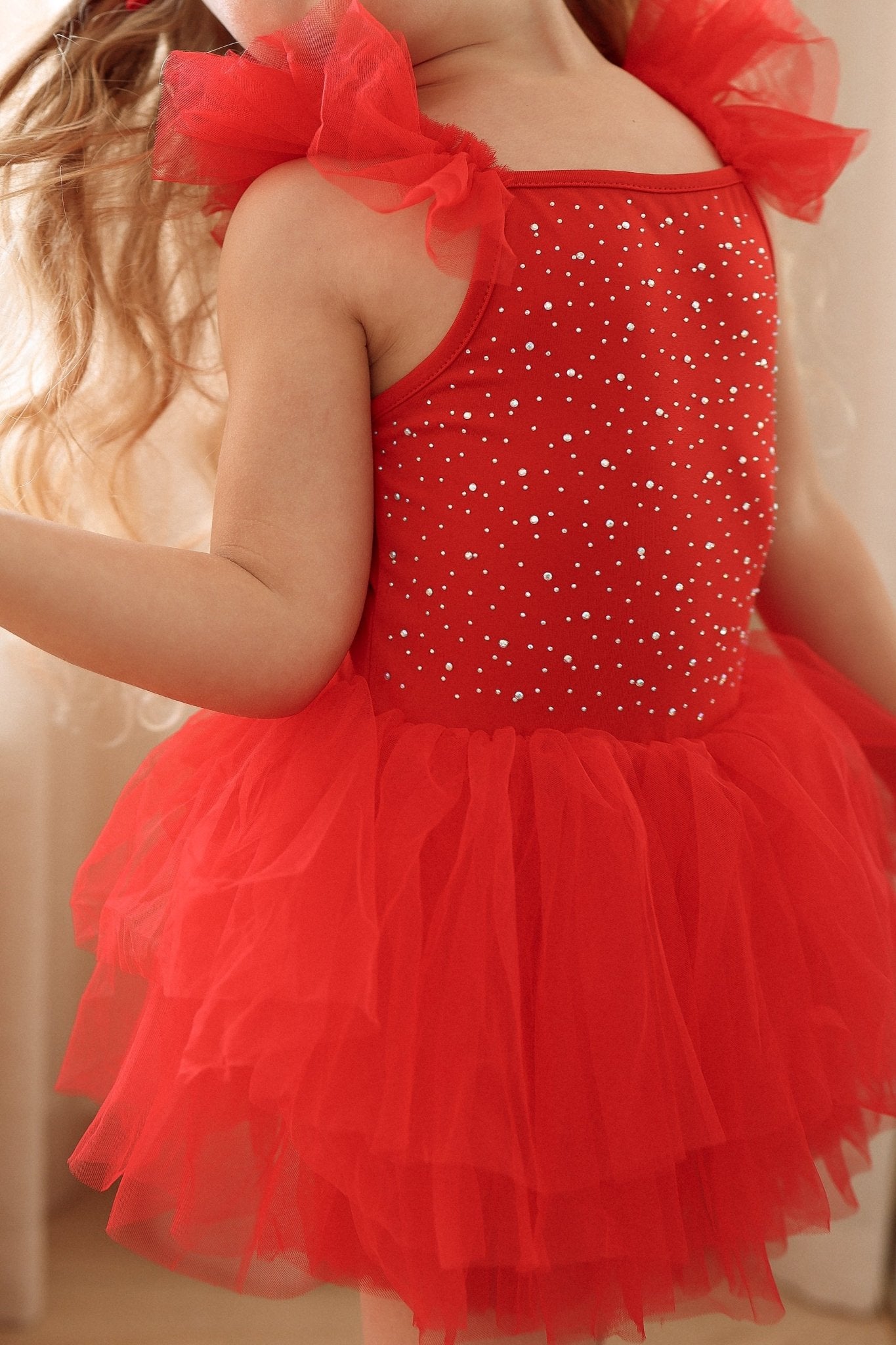 Luxe Ballerina Christmas Sparkle Tulle Tutu Leotard - Red