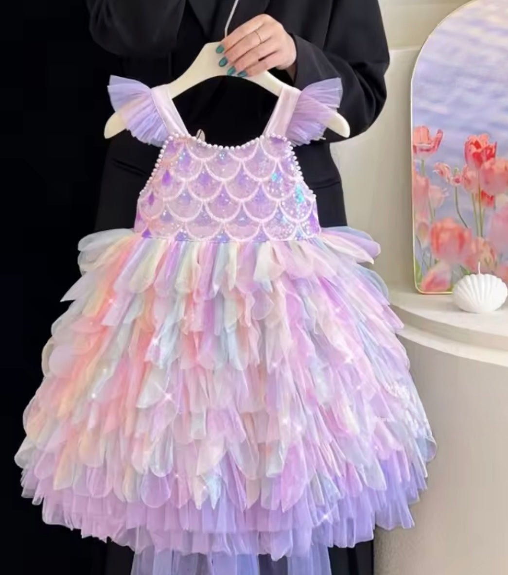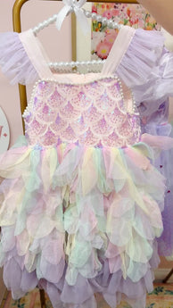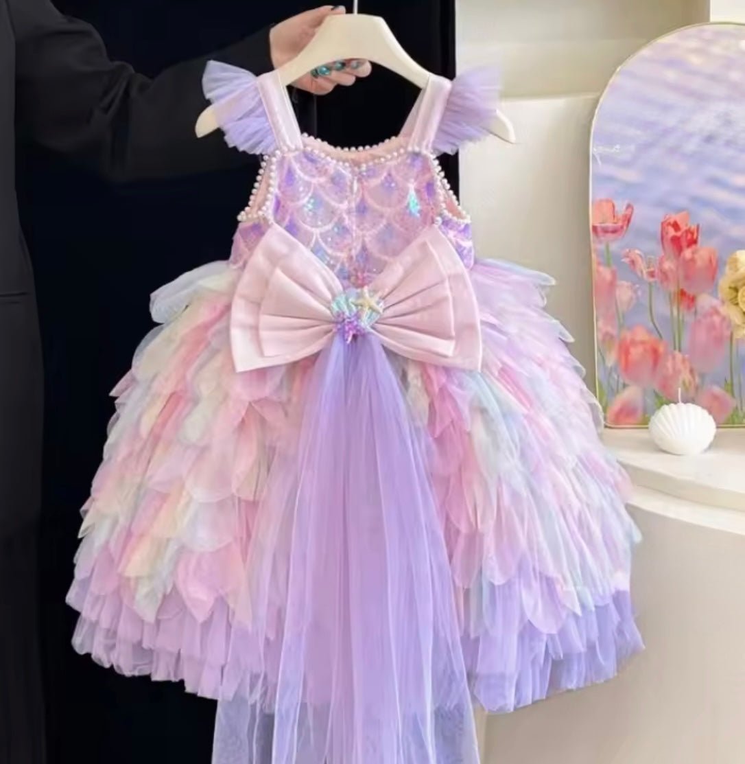 Make a splash! Our Mermaid Rainbow Bow Luxe Princess Dress shimmers with pastel magic—perfect for birthdays, photoshoots and every “under-the-sea” adventure.