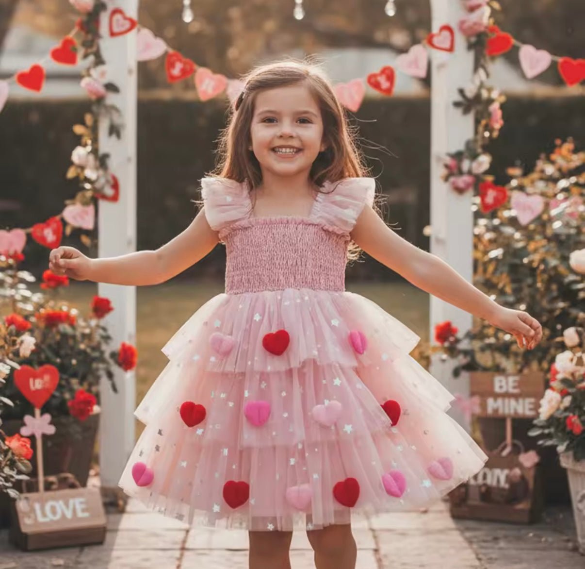 Girl My Valentine Heart Tulle Dress - Pink (pre order)