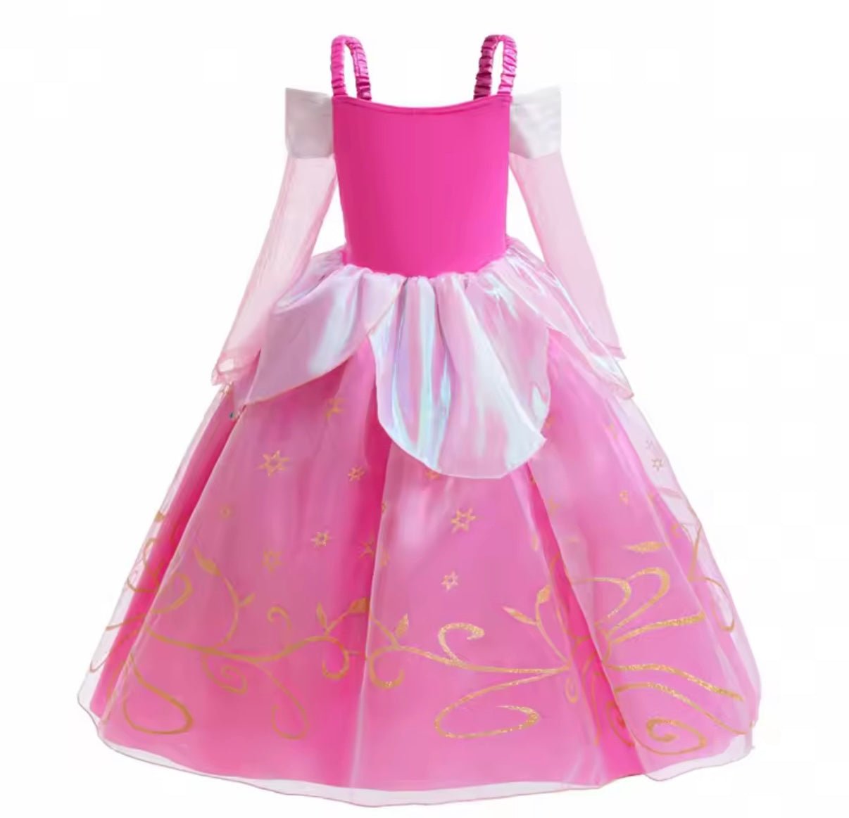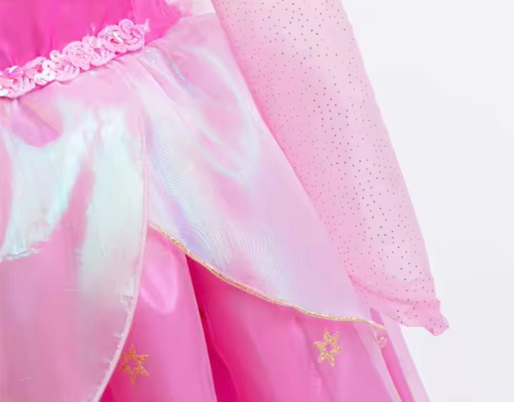Perfect as a toddler girl’s birthday party dress, flower girl gown, or princess costume for special celebrations, this Sleeping Beauty-inspired outfit is designed for twirls, smiles, and magical moments.
