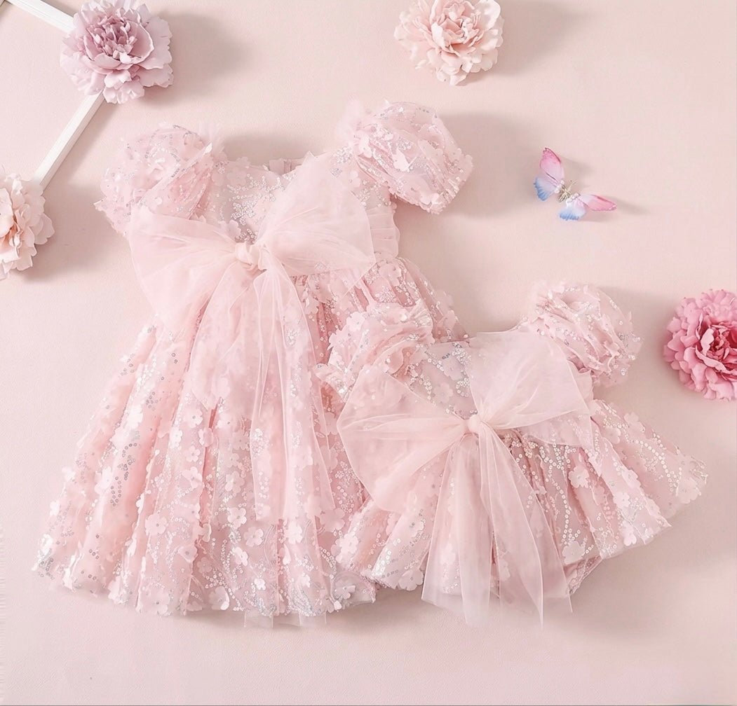 The oversized statement bow adds that extra touch of magic, while the romper design keeps your little one comfy and free to move (and twirl, of course 🫶).